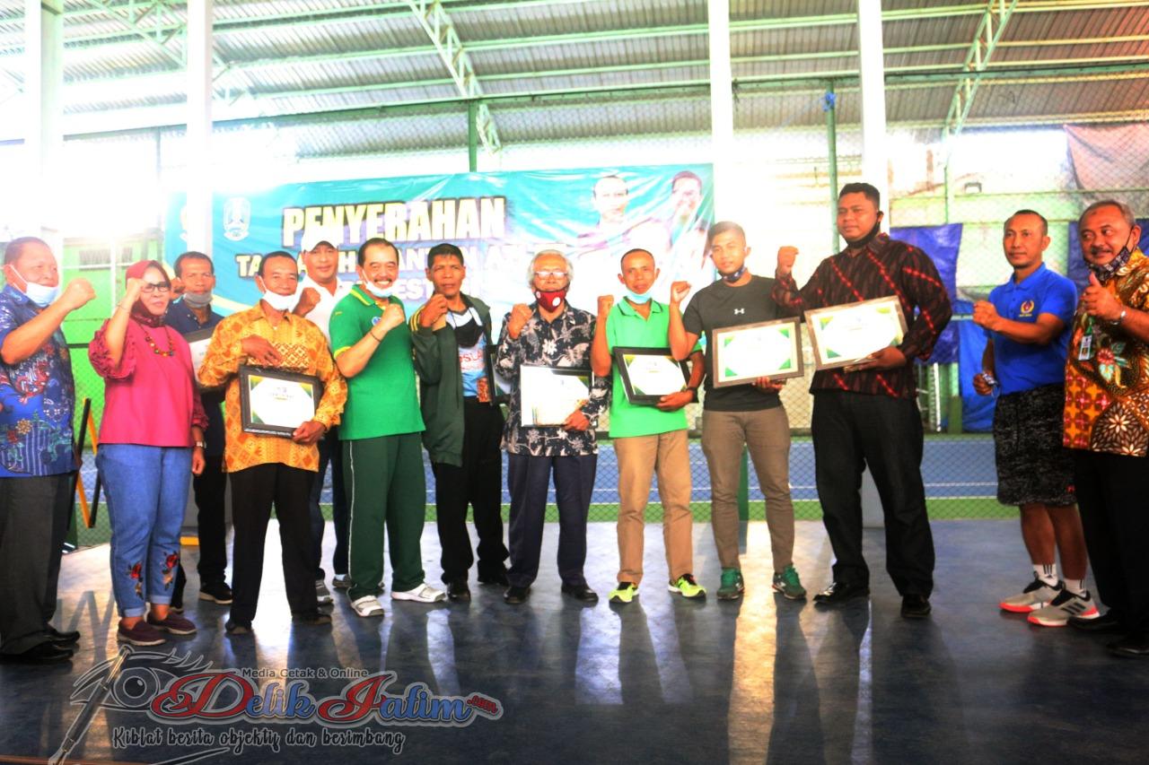 Surabaya, Delikjatim.com – KONI Jawa Timur (Jatim) memberikan penghargaan kepada Sepuluh mantan atlet berprestasi mendapat penghargaan. Penghargaan berupa sertifikat penghargaan dan tali asih uang sebesar Rp 10 juta, Selasa (10/11/2020).