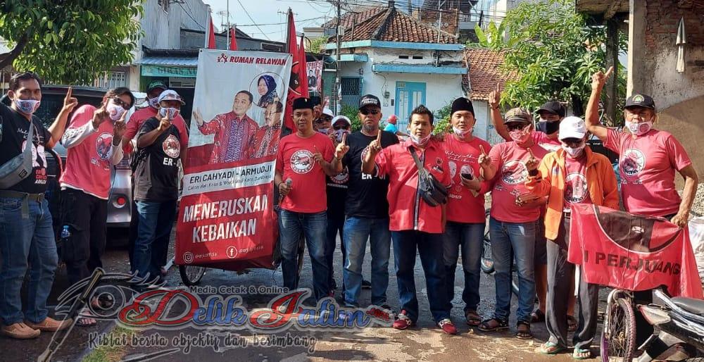 Seperti yang dilakukan oleh segenap relawan pemenangan pasangan Cawali dan Cawa Wali Kota Surabaya Eri Cayadi – Armuji (Erji) yang berada di Peneleh blusukan ke kampung-kampung yang berada di wilayah Kelurahan Peneleh, Kecamatan Genteng, Surabaya, Minggu (15/11/2020) pagi.