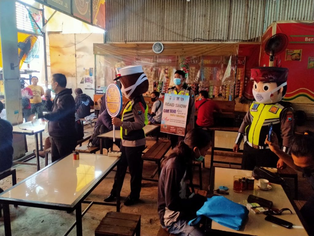 Dalam hal ini Satlantas Polrestabes Surabaya giat Road Show, Cak Tejo “CAKEP TERTIB JOGO SUROBOYO” (Suroboyo Tertib) ke warkop-warkop di wilayah hukumnya, mulai tanggal 14-18 Desember 2020.