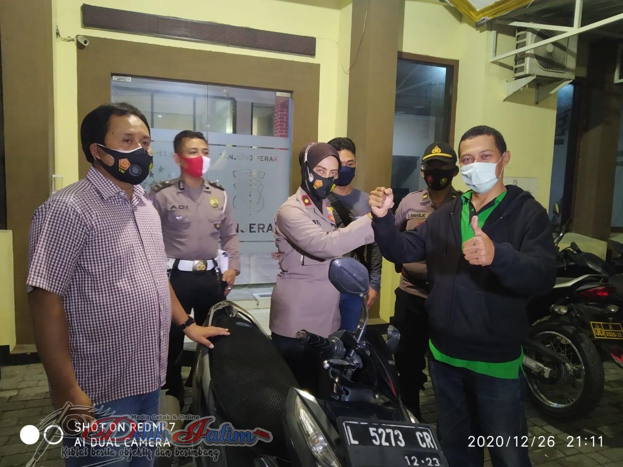 Tak lama kemudian tepatnya pukul 21.30 wib ada pemilik unit motor tersebut yang mendatangi Polsek Kenjeran untuk mengambil motornya Tersebut.