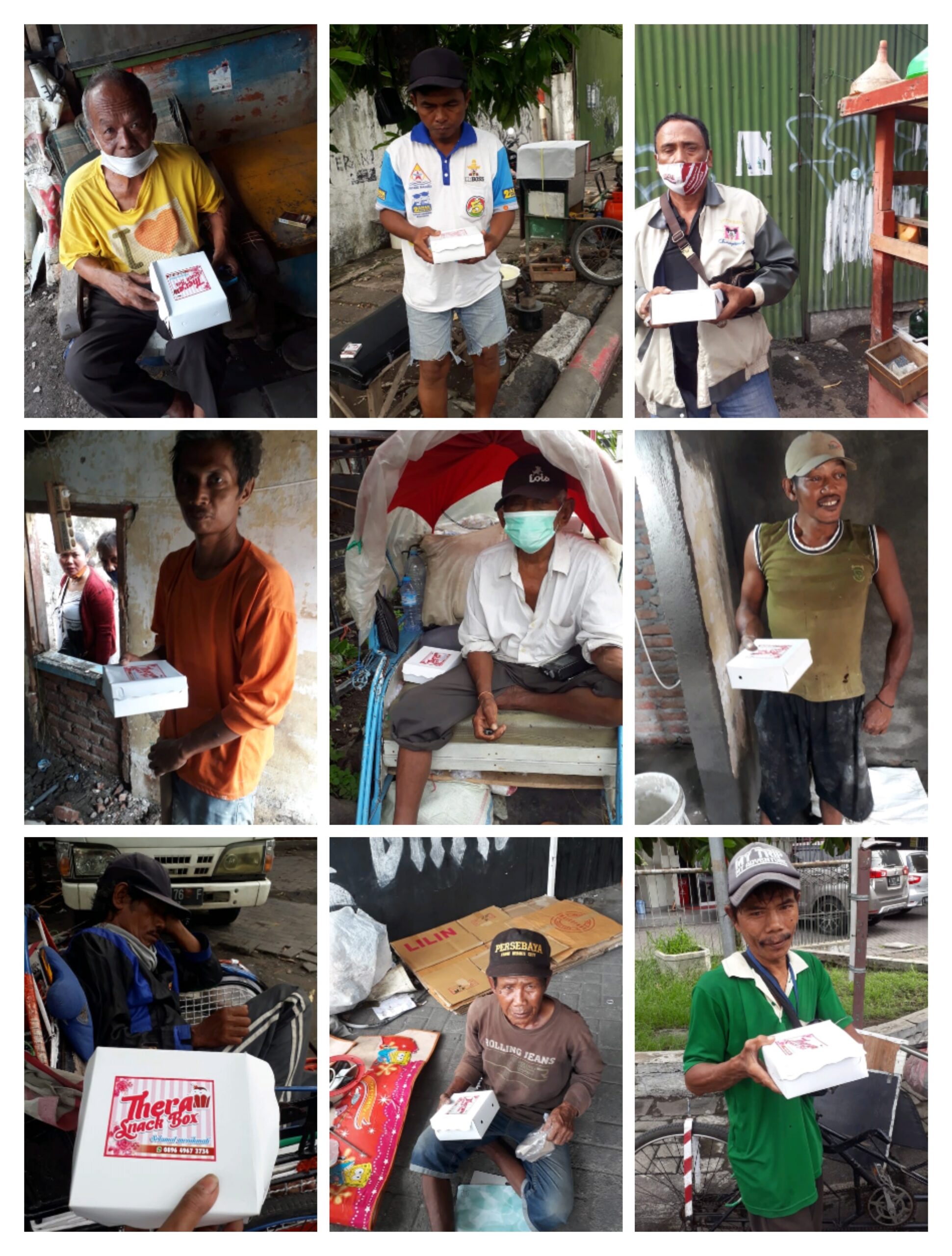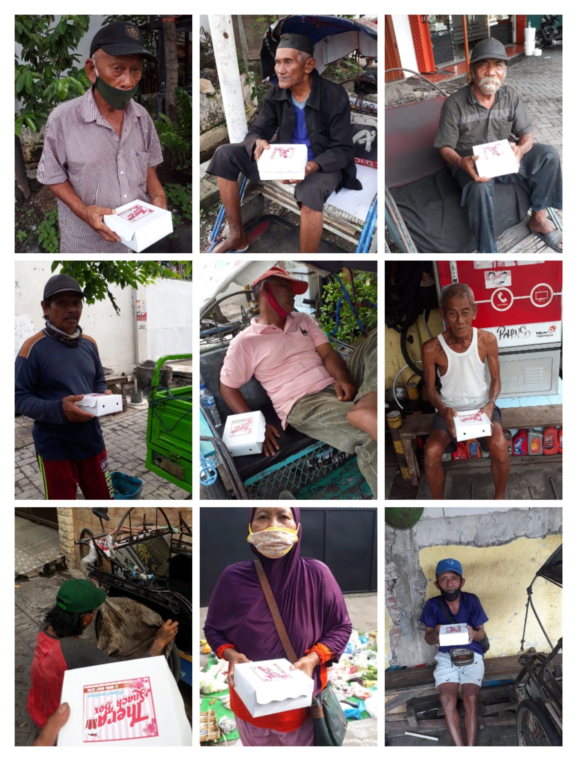 Surabaya, Delikjatim.comDPC HMSI Surabaya bersama Media Delikjatim.com bersinergi dalam membagikan puluhan kotak yang berisi Kue untuk para tukang Becak, Tukang asongan bahkan tunawisma di wilayah Surabaya, Jumat (11/12/2020) sejak pukul 07.00- 09.00 wib.