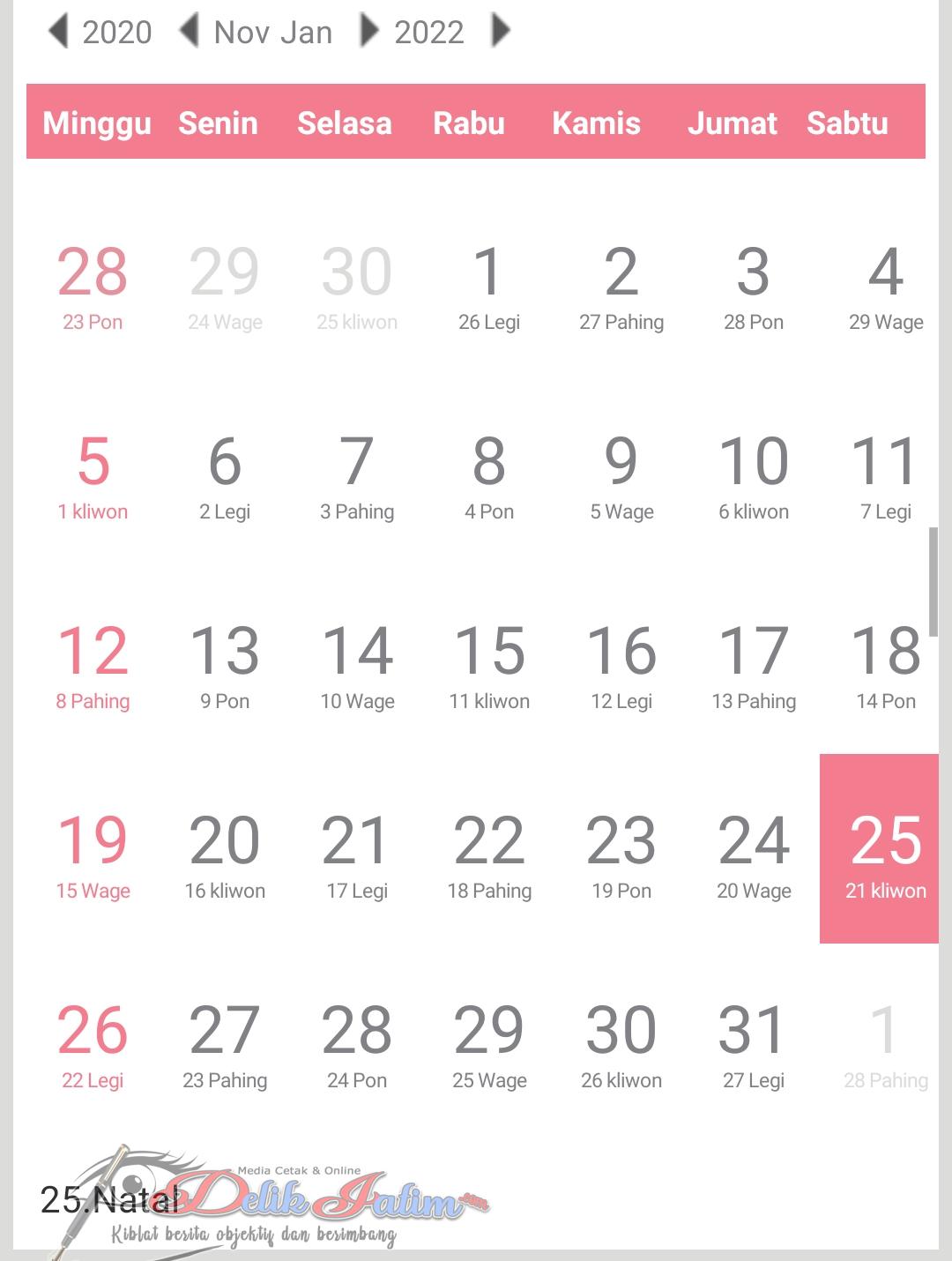 “Ada pun liburnya sebagai berikut mulai tanggal 24 sampai 27 Desember libur 24 cuti bersama Natal. 25 Hari Raya Natal kemudian 26 Sabtu dan 27 minggu