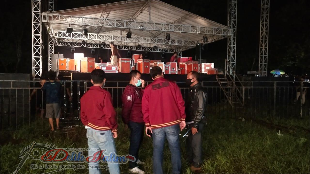 ” Acaranya tidak jadi dimulai mas, dari tadi habis maghrib, banyak anggota polisi maupun TNI yang berjaga di pekarangan dan juga di sekeliling panggung. Sampai artis dan musisi datang mereka tetap berjaga dan melarang untuk naik ke atas pentas, mobil artisnya disuruh putar balik”. Ungkap salah satu warga saat dimintai keterangan di lokasi.