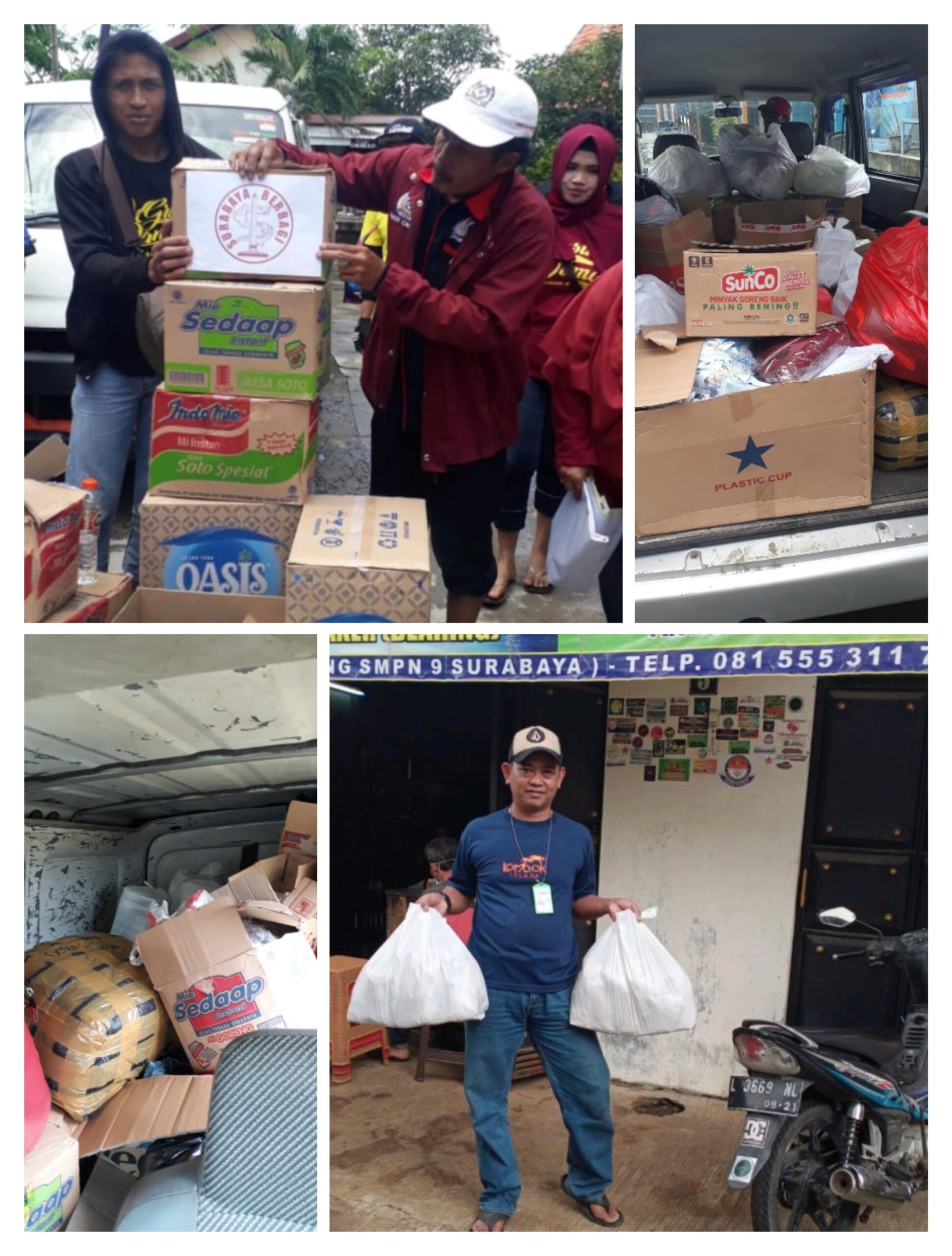 Komunitas yang bergabung dalam Wadah SURABAYA BERBAGI bekerja sama dengan Media Delikjatim.com membagikan kurang lebih 2.000 Nasi bungkus, Air mineral, Mie instand, Sembako, baju bekas dan sebagainya, Jumat (18/12/2020) usai shalat Jum’at pukul 13.00 wib.