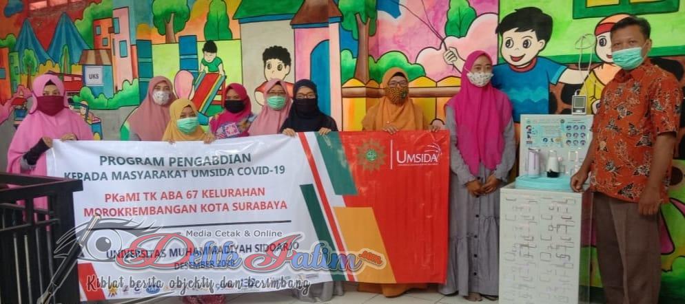 Surabaya, Delikjatim.com – Dalam rangka pencegahan Covid-19 di Surabaya khususnya kelurahan Morokrembangan, tim pengabdian pada masyarakat (Abdimas) Universitas Muhammadiyah Sidoarjo (UMSIDA) memberikan satu unit Thermo Washtafel yang serba otomatis tanpa setuh kepada Taman Kanak-kanak (TK) Aisyiyah Bustanul Athfal (ABA) 67 Surabaya, Selasa (08/12/2020)