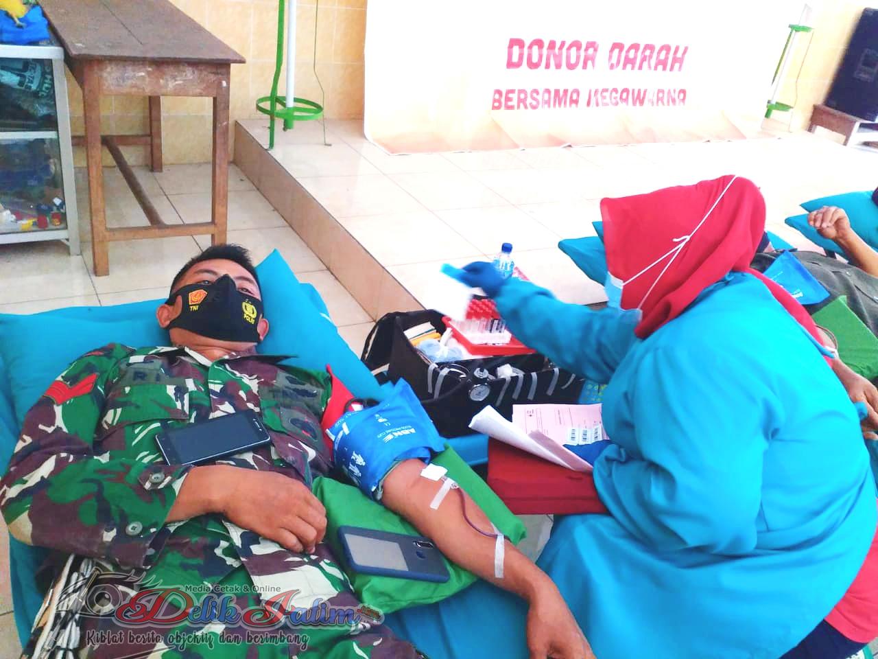 Boyolali, DelikJatim.com – Sebagai Wujud simpati di tengah mewabahnya Covid-19 dan guna mendukung stok darah PMI Kabupaten Boyolali Anggota Koramil 13/Nogosari Kodim 0724/Boyolali Koptu Supriyadi bersama warga Dukuh Mencil, Desa Glonggong Kecamatan Nogosari, Kabupaten Boyolali melaksanakan Donor darah. Kegiatan Bakti Sosial ini dilakukan di Aula Desa dan diprakasai oleh Karang Taruna Pemuda Setempat. Kamis (28/01/21).