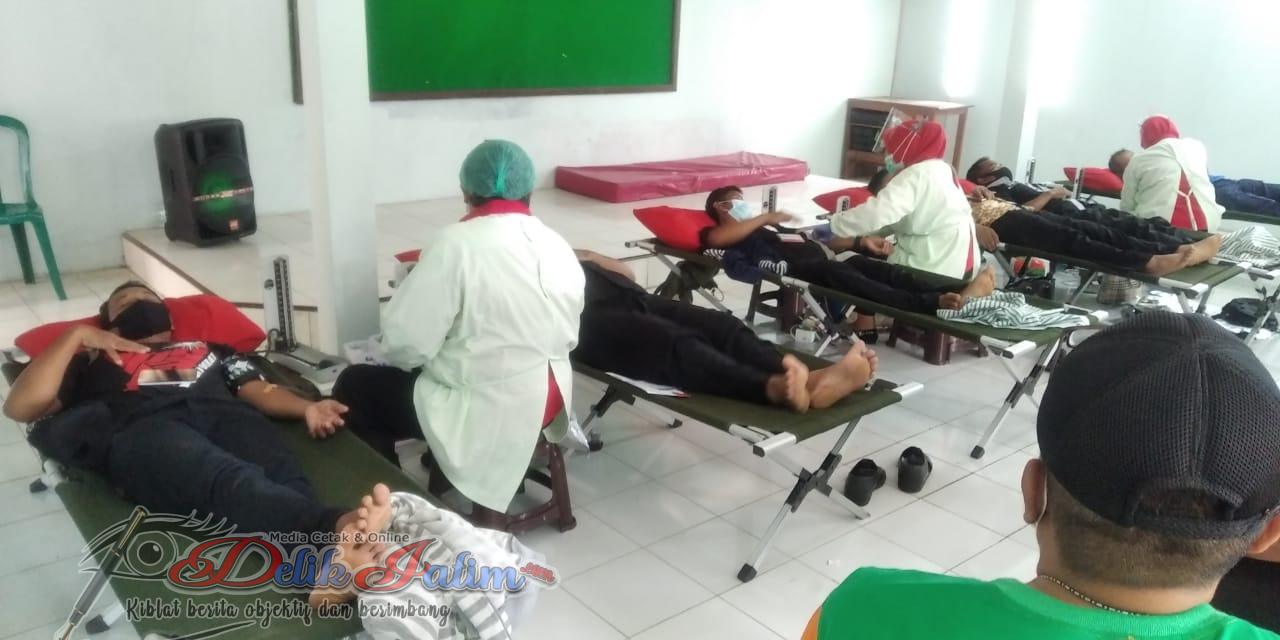 Ratusan warga mengikuti donor darah yang diselenggarakan oleh lintas komunitas yaitu GARASI, PASRA, PSHT, dan BKPRMI.