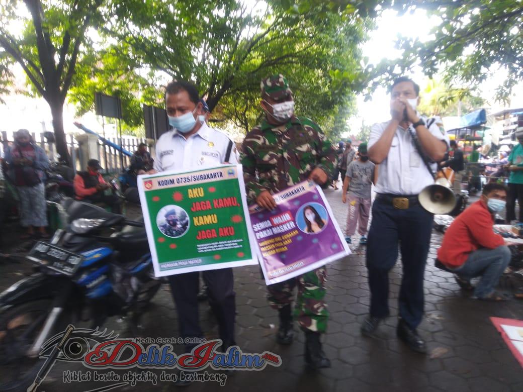 Surakarta, DelikJatim.com – Sabtu (20/02/2021) Babinsa Kelurahan Semanggi Koramil 05 Pasar Kliwon Kodim 0735/Surakarta Koptu Guler Santana bersama securty pasar Notoharjo melaksanakan Pengecekan dan himbauan protokol kesehatan , pakai masker, cuci tangan, jaga jarak ,Hindari Kerumunan,