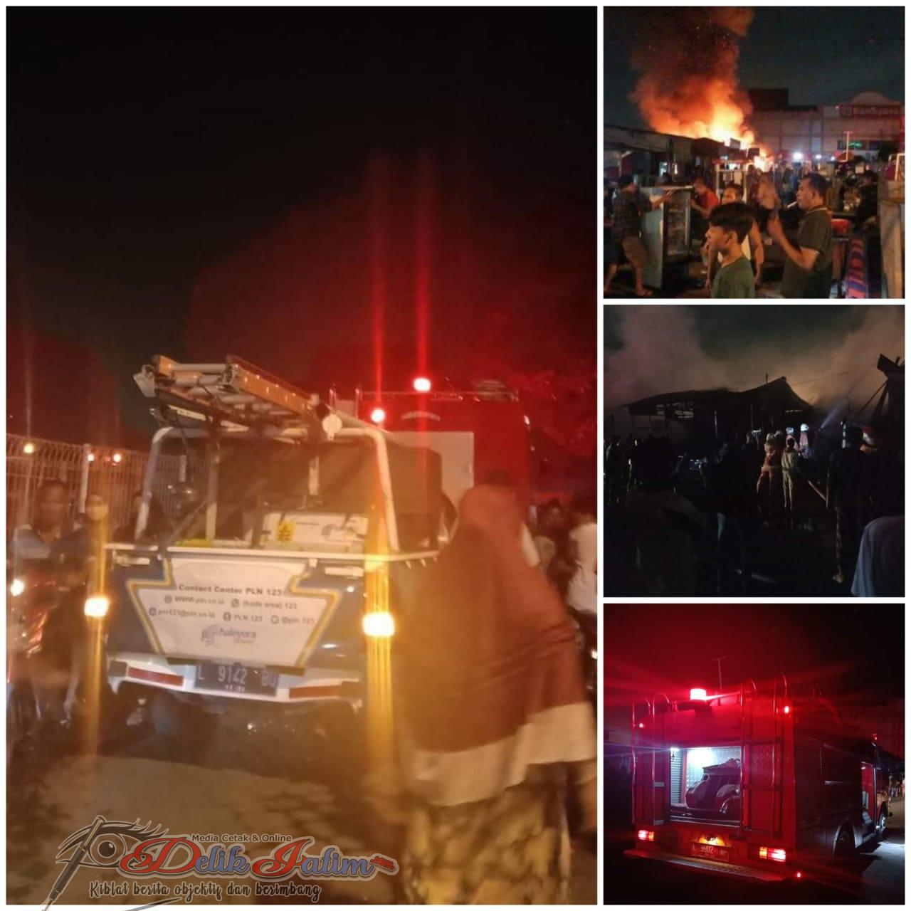 Sidoarjo , DelikJatim.com – 11 Kios Depan Ramayana Bungurasih Ludes Terbakar Akibat Korsleting listrik Selasa, 09 Mar 2021 23:30 WIB.