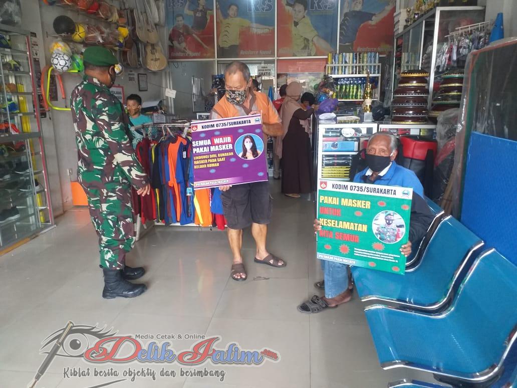 Surakarta, DelikJatim.com – Piket Koramil 03 Serengan Kodim 0735 Surakarta Serka A. Rumbawa melaksanakan Penerapan Edukasi Pemberlakuan Pembatasan Kegiatan Masyarakat ( PPKM ) di Toko Olah Raga fany (Fany Sport Jl. Jamsaren Serengan Kota Surakarta, (29/03/21)