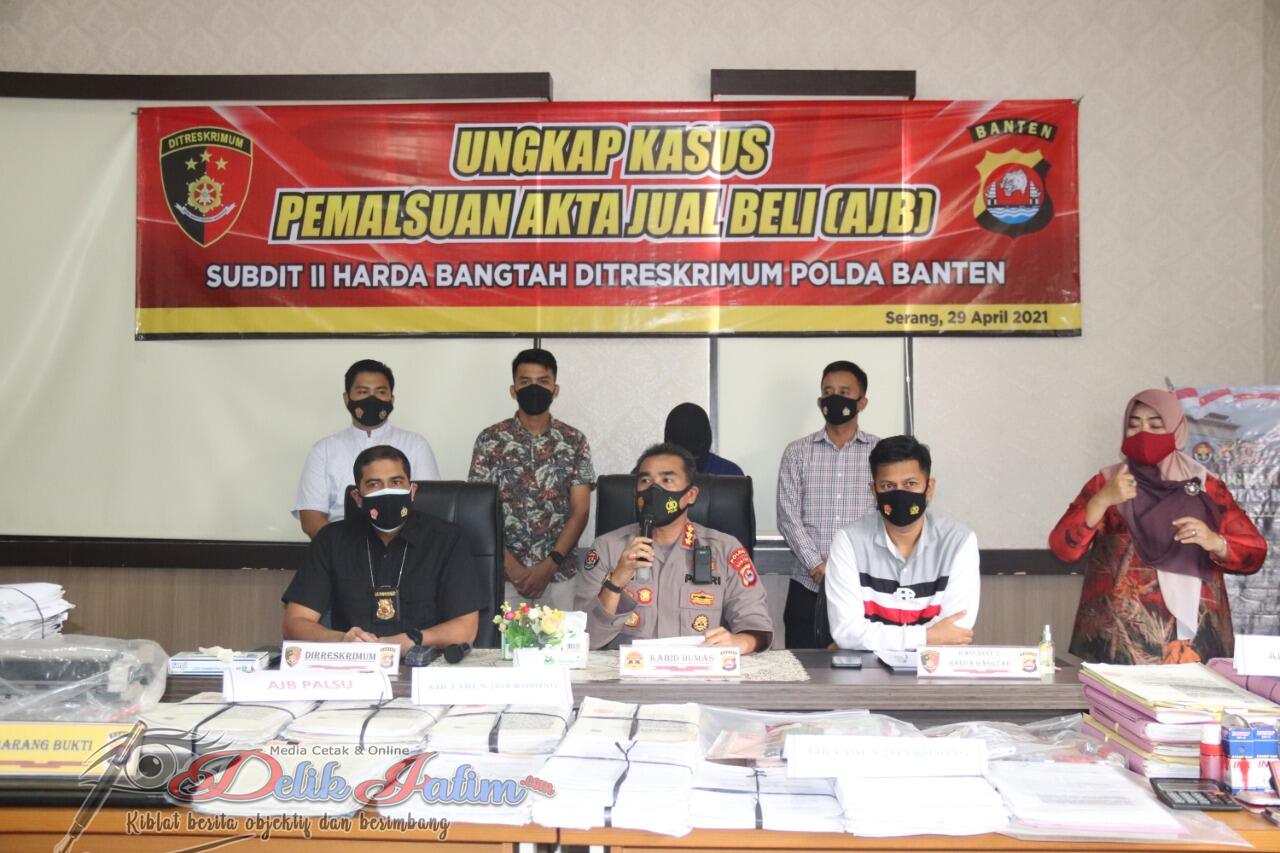 Ditempat yang sama, Kasubdit II Harda Bangtah Ditreskrimum Polda Banten AKBP Dedy Darmawansyah menjelaskan bahwa barang bukti berupa Akta Jual Beli dan Akta Hibah yang dipalsukan tersangka sebanyak 690 akta.