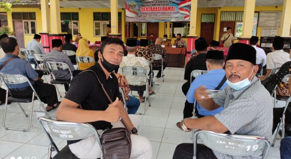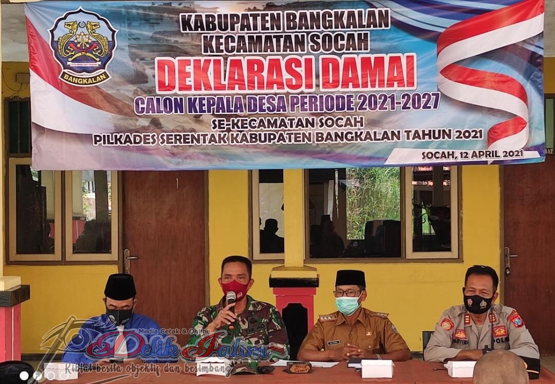 Bangkalan, Delikjatim.com – Pemerintah Kecamatan Socah Kabupaten Bangkalan menggelar acara Deklarasi Damai Pemilihan Kepala Desa (Pilkades) Tahun 2021 dalam rangka mewujudkan suksesnya pelaksanaan pilkades serentak di Kabupaten Bangkalan tahun 2021 yang aman dan damai.