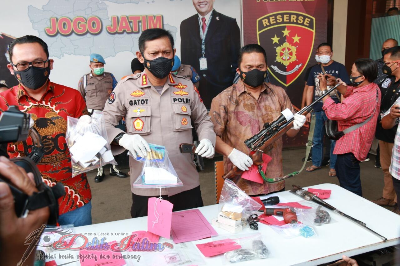 Surabaya, Delikjatim.com – Seorang pria perakit senjata api (senpi) ilegal asal Malang, ditangkap Polisi. Tiga pucuk senpi hasil rakitannya dan puluhan amunisi turut disita sebagai barang bukti.