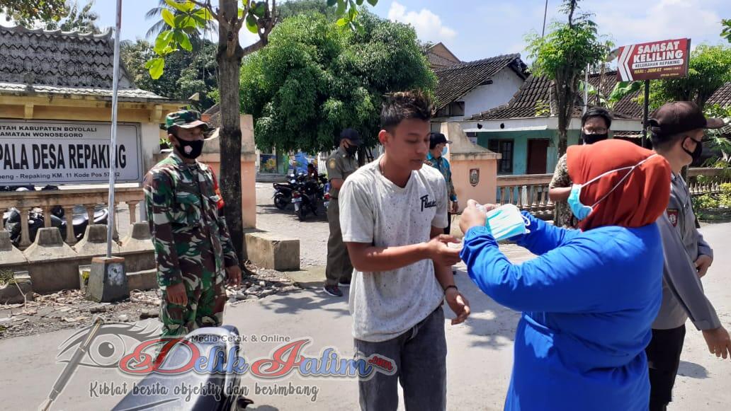 Boyolali, Delikjatim.com – Sejumlah pengendara kendaraan terjaring razia masker di Jalan Desa Repaking , tepatnya wilayah Kecamatan Wonosamudro. Para pelanggar protokol kesehatan yang tidak mengenakan masker rata- rata adalah penduduk setempat yang meintas. Setelah mendapatkan pemahaman dari p[etugas warga yang tak mengenakan masker di beri masker gratis.