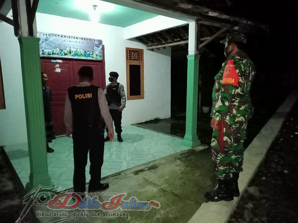 Patroli keamanan terutama dilaksanakan di tempat ibadah seperti Gereja Desa Banyu Urip dengan Gereja di Desa Gondanglegi Kecamatan Klego Kabupaten Boyolali, Jumat Malam (02/04/21).