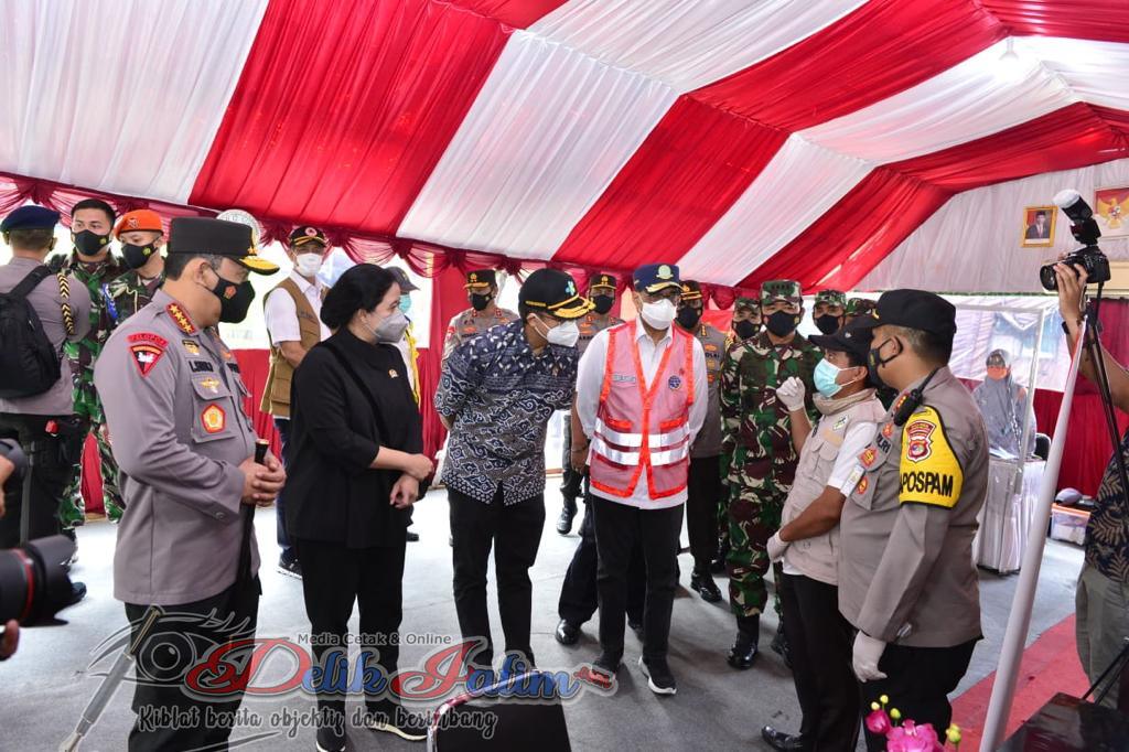 Jakarta, Delikjatim.com — Panglima TNI Marsekal Hadi Tjahjanto bersama Kapolri Jenderal Listyo Sigit Prabowo dan Ketua DPR RI Puan Maharani meninjau posko penyekatan check point Pelabuhan Bakauheni Lampung.