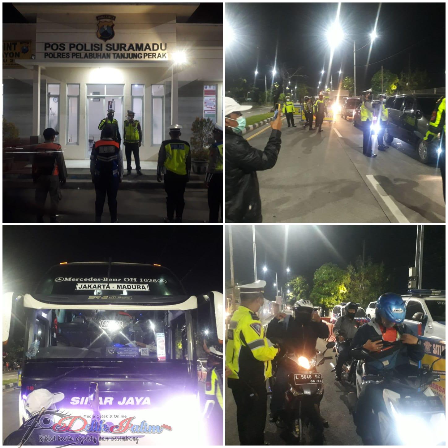 Surabaya, Delikjatim.com – Kapolres Pelabuhan Tanjung Perak Surabaya Bersama Jajaran Polsek Kenjeran melaksanakan penyekatan di pintu masuk jembatan Suramadu, rabu (06/05/2021) pukul 00:00 WIB.
