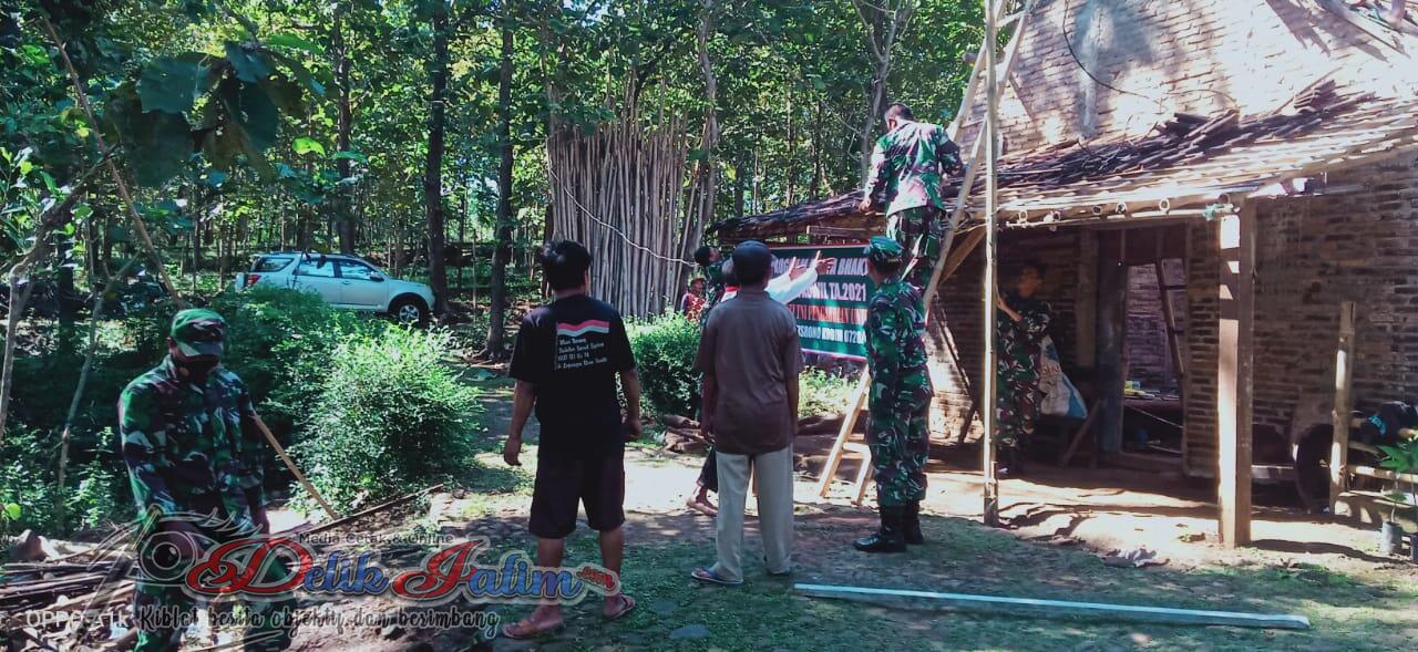Wonogiri, Delikjatim.com – Anggota Koramil 14/Jatisrono yang dipimpin oleh Batuud Pelda Suyata, bersama warga bergotong-royong membangun Rumah Tidak Layak Huni (RTLH) milik Mario, warga RT 03/04 Dusun Blimbing, Desa Sidorejo. Sabtu ( 29/05/21 )