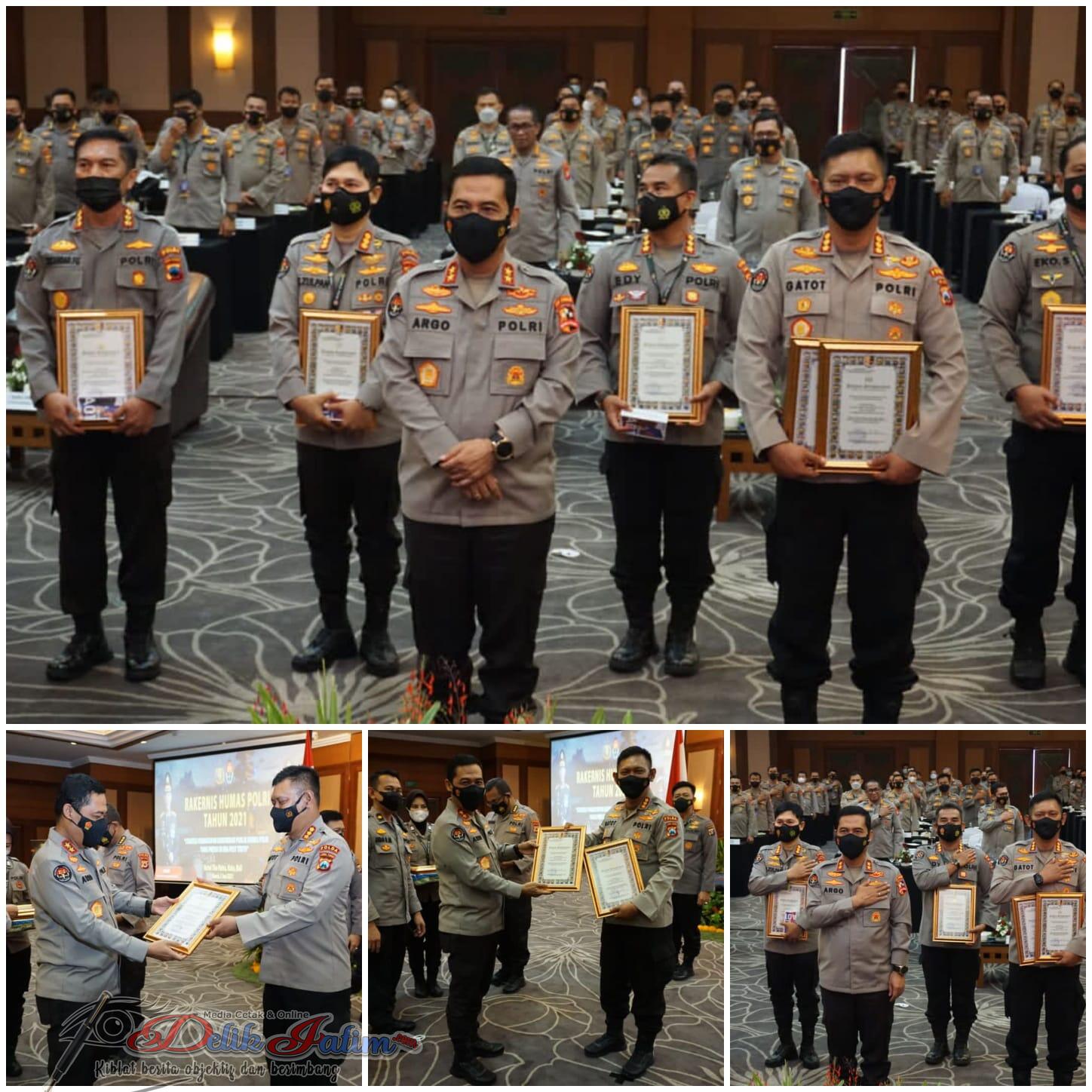 Penghargaan tersebut di berikan dalam kegiatan Rapat Kerja Teknis (Rakernis) Humas Polri 2021, yang diikuti Kabid Humas seluruh Indonesia, selama 3 hari, mulai 3-5 Juni 2021 di salah satu Hotel kawasan Kuta Bali.