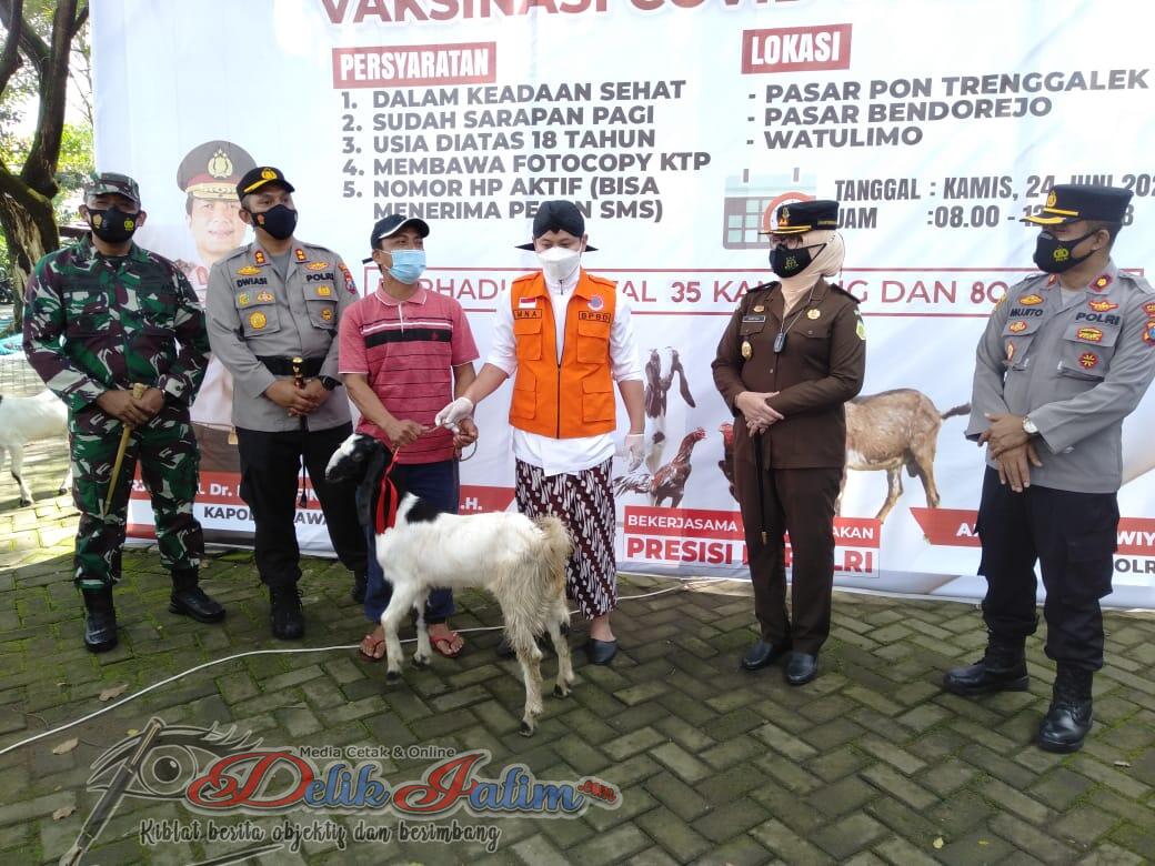 Uniknya, peserta vaksinasi berkesempatan meraih hadiah berupa 35 kambing dan 80 ekor ayam. Hal ini dilakukan untuk menarik minat masyarakat agar mau dan berkenan mengikuti vaksinasi sehingga memiliki kekebalan tubuh dan tidak mudah terpapar Covid-19.