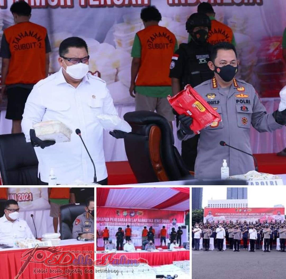 Jakarta, Delikjatim.com – Kepala BNN RI, Dr. Petrus Reinhard Golose menghadiri kegiatan Press Release Pengungkapan Tindak Pidana Narkotika Jenis Sabu 1,129 Ton Jaringan Timur Tengah-Indonesia, di Polda Metro Jaya, Senin (14/6/2021).