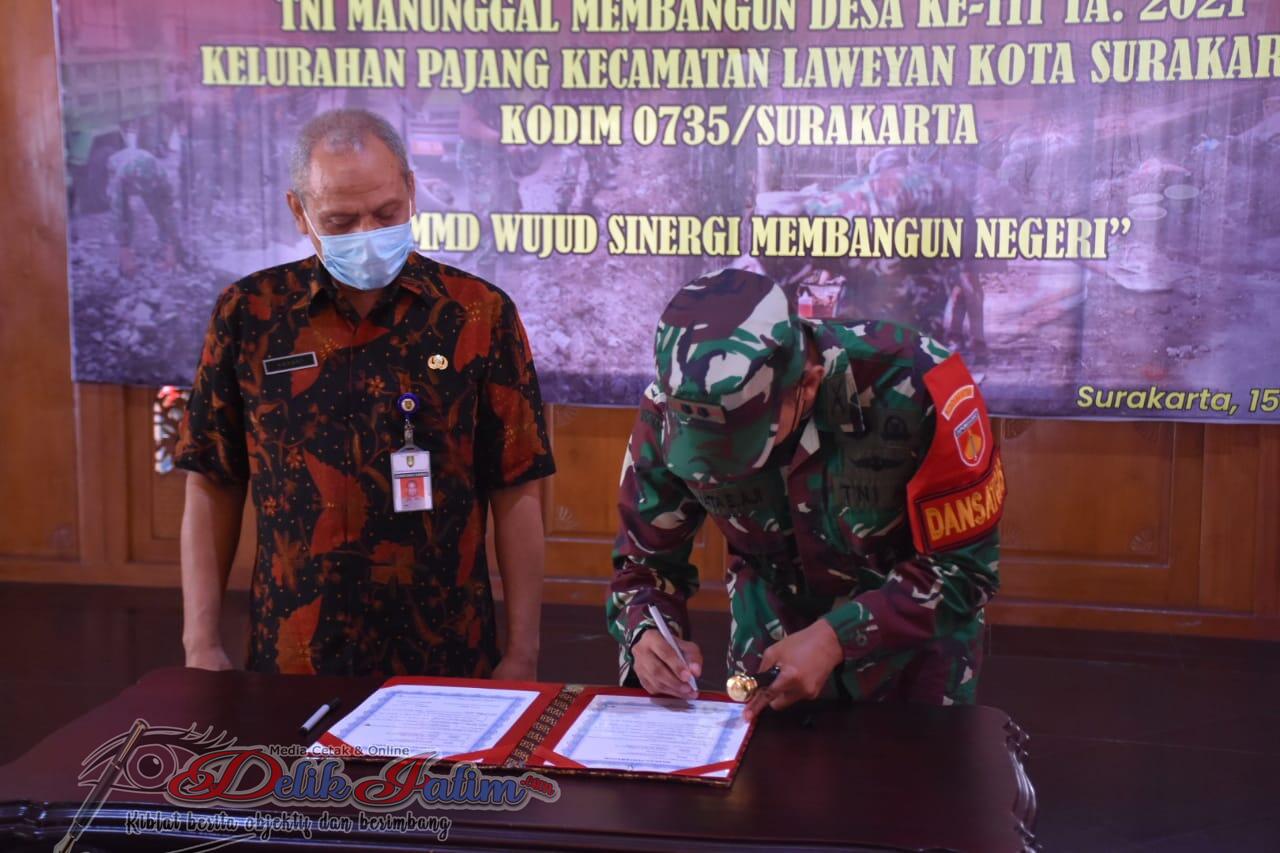 Surakarta, Delikjatim.com – Bertempat di Pendhapi Gedhe Komplek Balai kota Surakarta Jl. Jend. Soedirman No. 2 Kelurahan Kampung Baru Kecamatan Pasar kliwon kota Surakarta program TNI Manunggal Membangun Desa (TMMD) Reguler ke – 111 TA. 2021 di kelurahan Pajang kecamatan Laweyan kota Surakarta secara resmi dibuka,Selasa (15/06/2021)