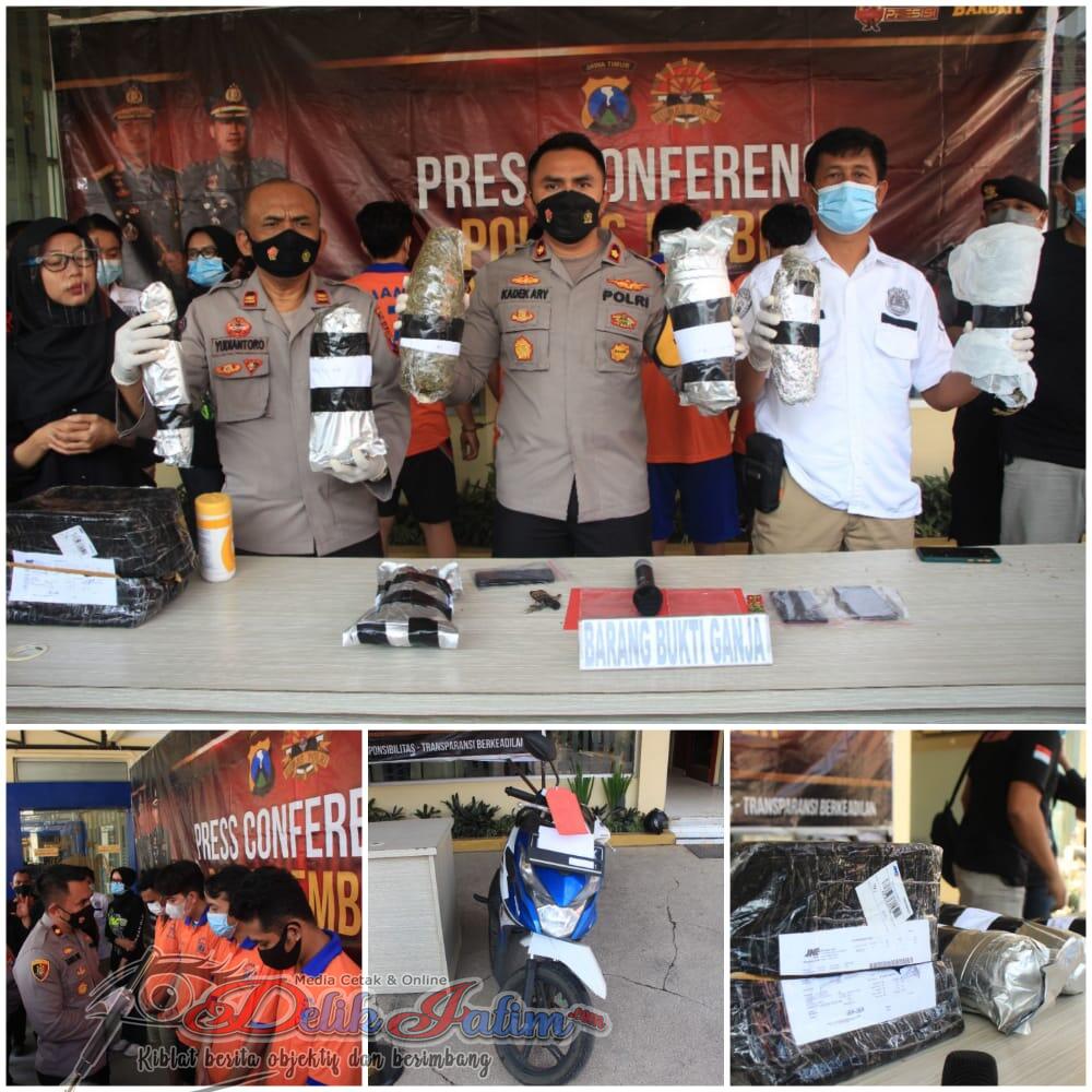 Jember, Delikjatim.com – Jajaran Polres Jember berhasil ungkap peredaran ganja yang dijual secara online, 4 warga berhasil diamankan dimana 2 diantaranya adalah Mahasiswa sebuah PTS tinggi di Malang, mereka adalah BO (29) warga Kebonsari Jember, AW (30) warga Jalan Trunojoyo Jember dan IS dan IM keduanya mahasiswa di Malang.
