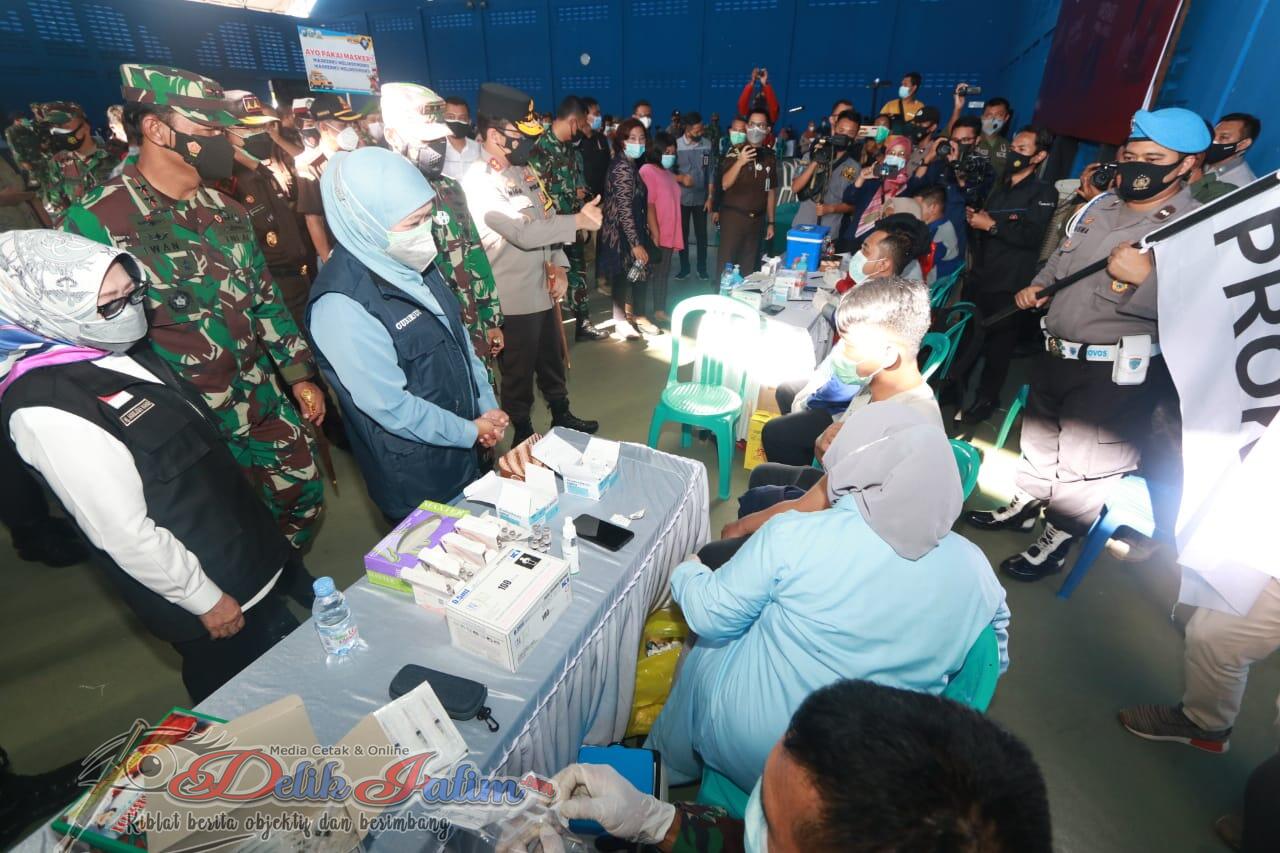 Jombang, Delikjatim.com – Forkopimda Jawa Timur mengecek pelaksanaan serbuan vaksinasi di Gedung Tenis Indoor, Jalan Kusuma Bangsa, Jombang. Sebanyak 2900 warga Jombang telah dilakukan vaksinasi hari ini, Selasa (20/7/2021).