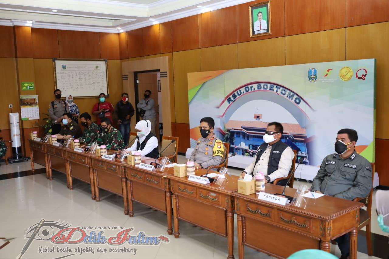 Surabaya, Delikjatim.com – Forkompimda Jawa Timur mengecek secara langsung penambahan ruang ICU dan HCU, serta menyapa tenaga kesehatan di RSUD Dr. Soetomo Surabaya, pada Senin (19/7/2021).