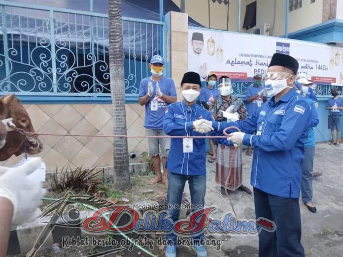 Surabaya, Delikjatim.com – DPC Partai Demokrat Surabaya dalam memperingati Hari Raya Idul Adha 1442 H melaksanakan pemotongan hewan kurban berupa sapi dan kambing di sekretariat DPC Partai Demokrat jalan Trenggilis Utara, Rabu 21 Juli 2021.