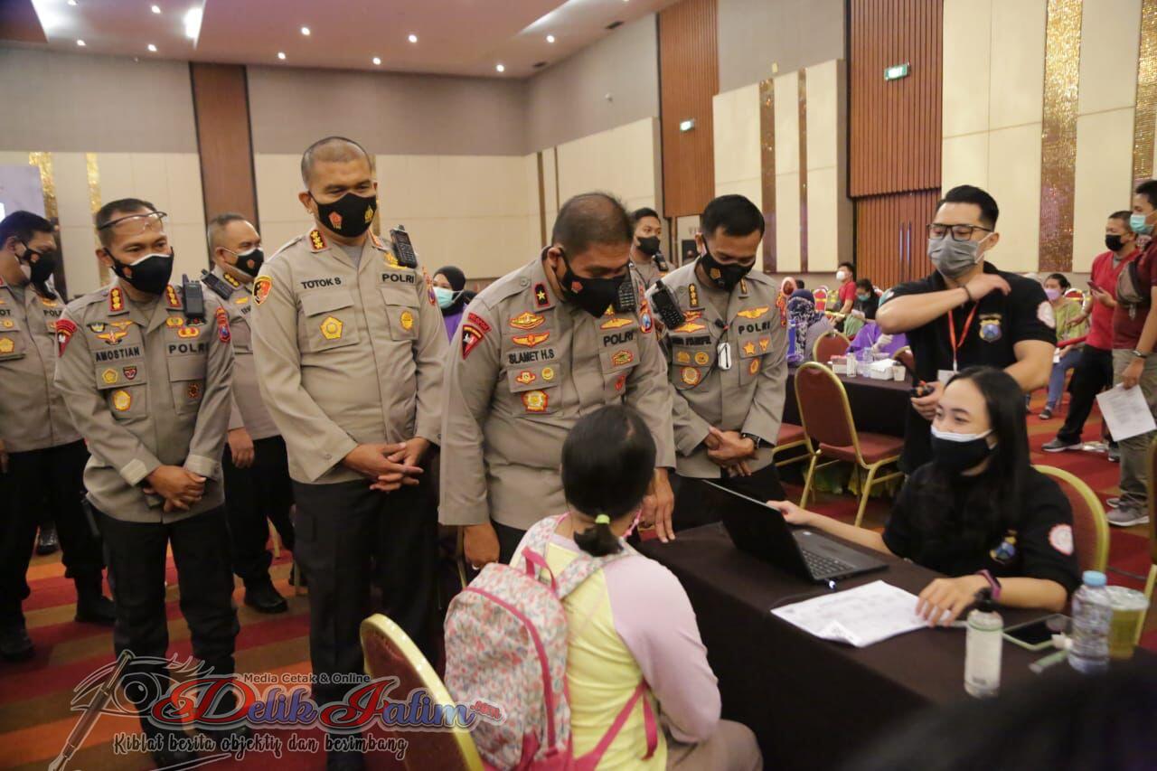 Sementara, kegiatan di Surabaya sendiri dihadiri oleh Wakapolda Jatim Brigjen Pol Slamet Hadi Supraptoyo, dalam keterangannya Jendral bintang satu ini mengatakan, kegiatan ini merupakan upaya kepolisian dalam rangka membantu pemerintah, mewujudkan herd immunity di Jawa Timur.