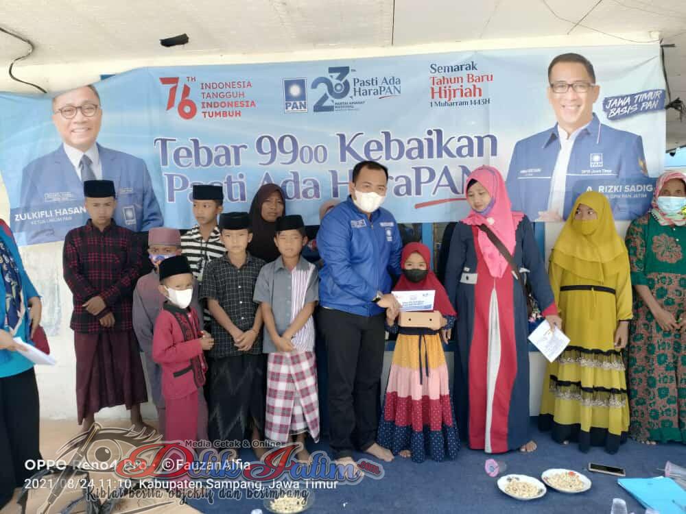 Pada momentum ini, parpol berlambang matahari putih menyantuni 9900 anak Yatim se Jawa Timur. Salah satunya oleh pengurus DPD PAN Sampang yang disampaikan H. Moh Fauzan selaku Sekretaris partai. “Sangat bersyukur serangkaian acara berjalan dengan lancar dan khidmat,” katanya.