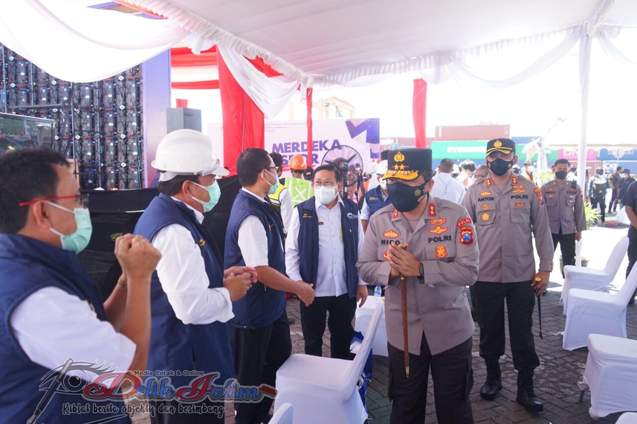 Surabaya, Delikjatim.com – Kapolres Pelabuhan Tanjung Perak, AKBP Anton Elfrino Trisanto, SH, S.I.K, M.Si memimpin pengamanan pelaksanaan kegiatan Pelepasan 17 Pintu Merdeka Ekspor yang digelar di PT Terminal Petikemas Surabaya (TPS) di Jalan Tanjung Mutiara, Sabtu, 14 Agustus 2021.