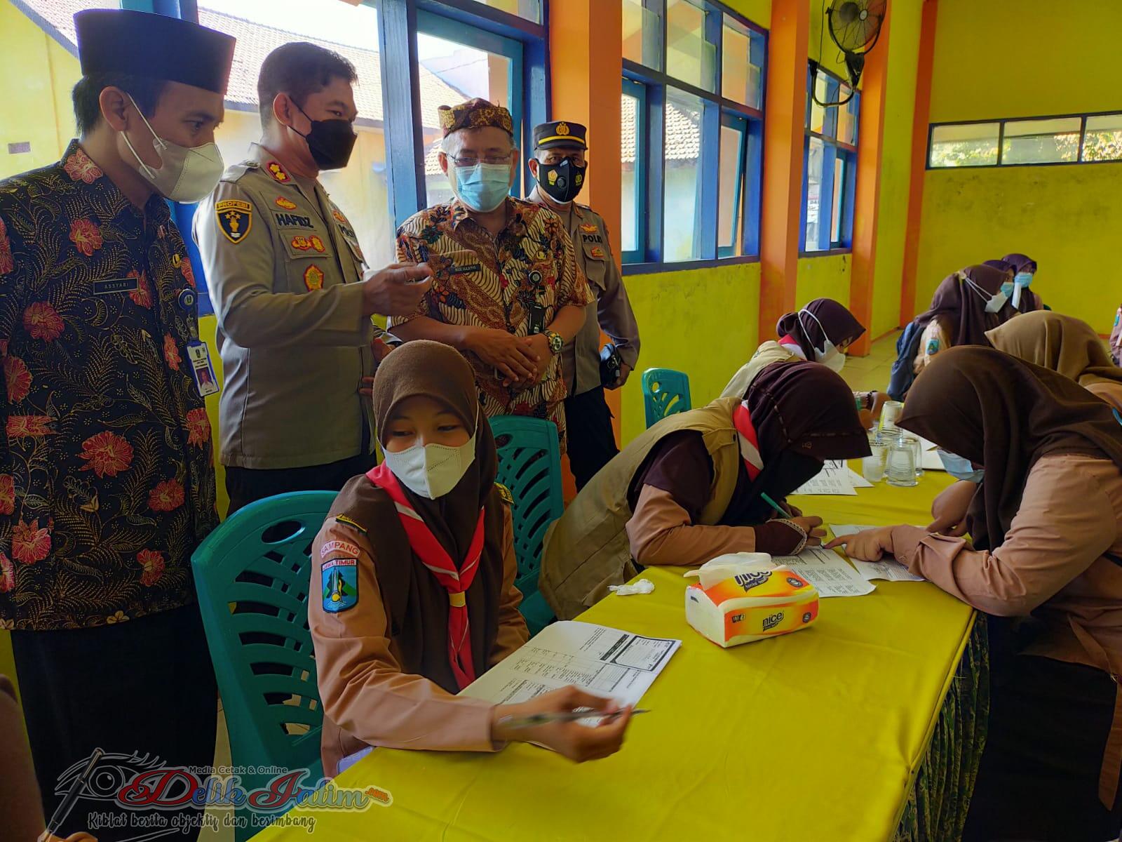 Kapolres Sampang AKBP Abdul Hafidz S.IK, M.Si pada hari ini meninjau pelaksanaan vaksinasi di SMK Negeri 1 Sampang dan SMK Negeri 2 Sampang dengan di dampingi Kasat Intel Polres Sampang AKP Khoirul Anwar SH dan Kapolsek Sampang Iptu Tomo S.Pd.