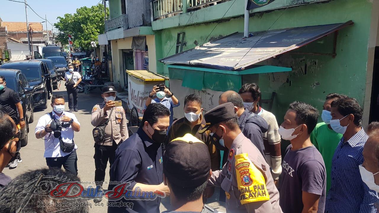 Surabaya, Delikjatim.com – Polres Pelabuhan Tanjung Perak melakukan pengamanan kunjungan Menteri BUMN Erick Thohir di Kampung Dusun Nambangan, Kenjeran, Minggu, 15 Agustus 2021.