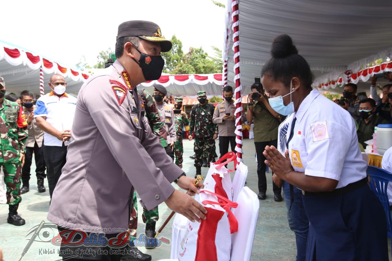 Penyerahan itu dalam rangka kunjungan Kapolri bersama dengan Panglima TNI Marsekal Hadi Tjahjanto ke kegiatan vaksinasi massal di SDN Inpres Harapan atau Sekolah Lentera Harapan, Kabupdate Jayapura, Papua, Jumat (27/8/2021).