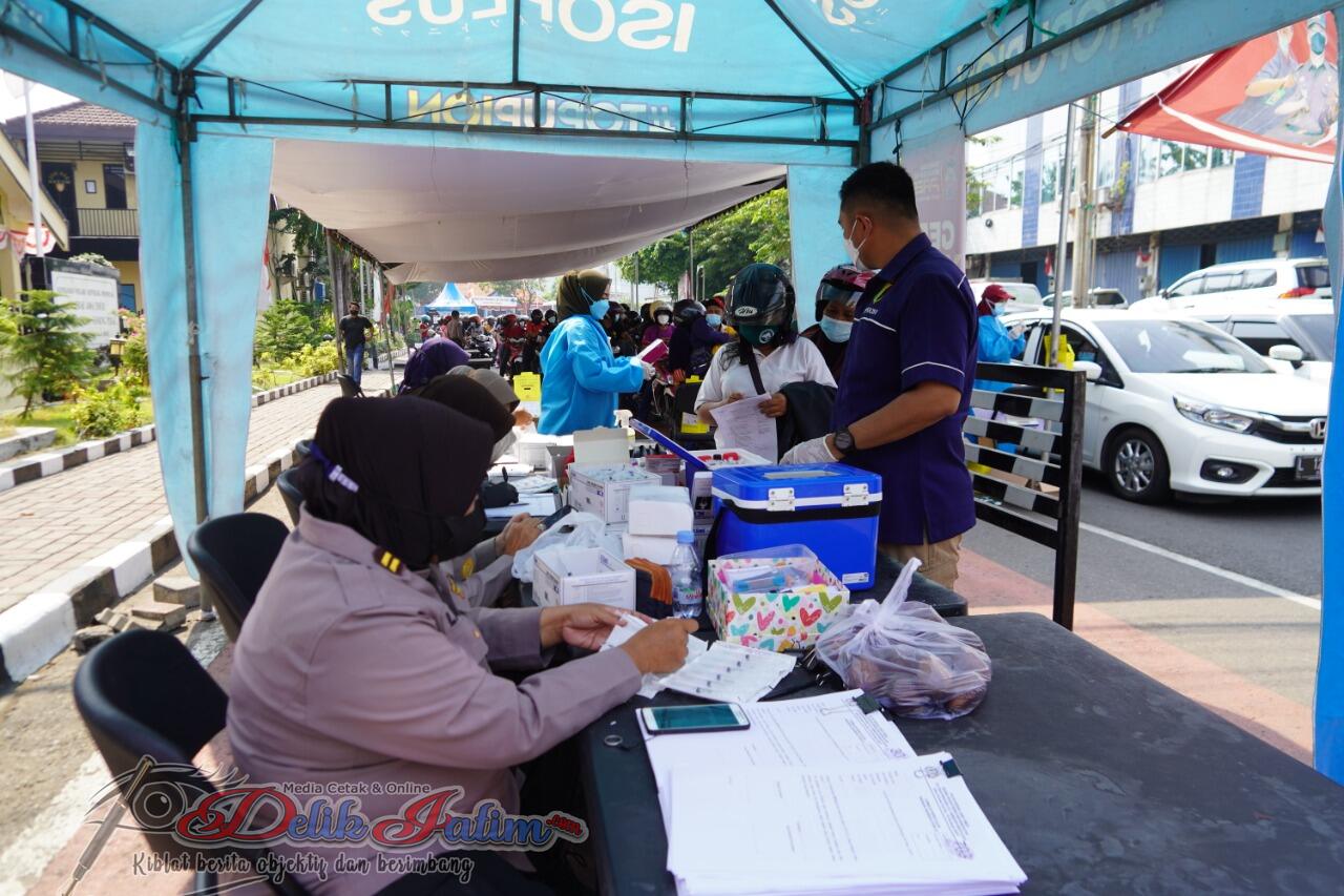 Surabaya, Delikjatim.com – Layanan serbuan vaksin presisi bertajuk ‘Vaksin Merdeka’ yang digelar di Jalan Kalianget depan Mapolres Pelabuhan Tanjung Perak, Kamis, 19 Agustus 2021 dibanjiri peserta.