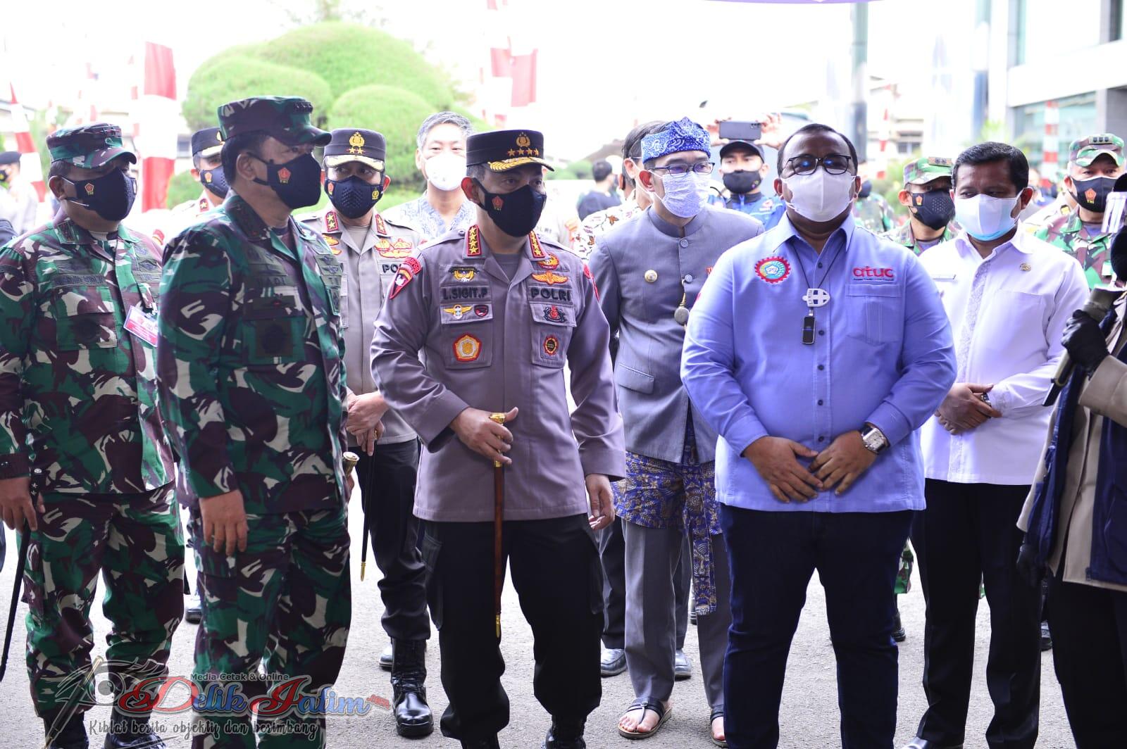 Jakarta, Delikjatim.com – Panglima TNI Marsekal Hadi Tjahjanto dan Kapolri Jenderal Listyo Sigit Prabowo meninjau pelaksanaan vaksinasi massal Konfederasi Serikat Pekerja Seluruh Indonesia (KSPSI) di PT. Kahatex, Sumedang, Jawa Barat, Kamis (5/8/2021).