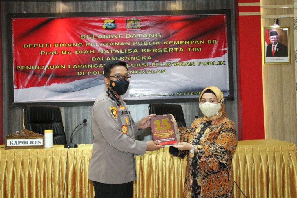 Tim KEMENPAN RB yang juga turut serta ke Bangkalan yakni Asisten Deputi Koordinasi Pelaksanaan Kebijakan dan Evaluasi Pelayanan Publik II Kementerian PANRB Noviana Andrina beserta tim ikut mendampingi Prof Diah melakukan pengecekan terhadap 3 pelayanan publik unggulan di Polres Bangkalan, yaitu SKCK, SPKT, dan SIM. Tim KEMENPAN RB juga meninjau kesiapan Polres Bangkalan guna meraih predikat WBBM di akhir tahun 2021 nanti.
