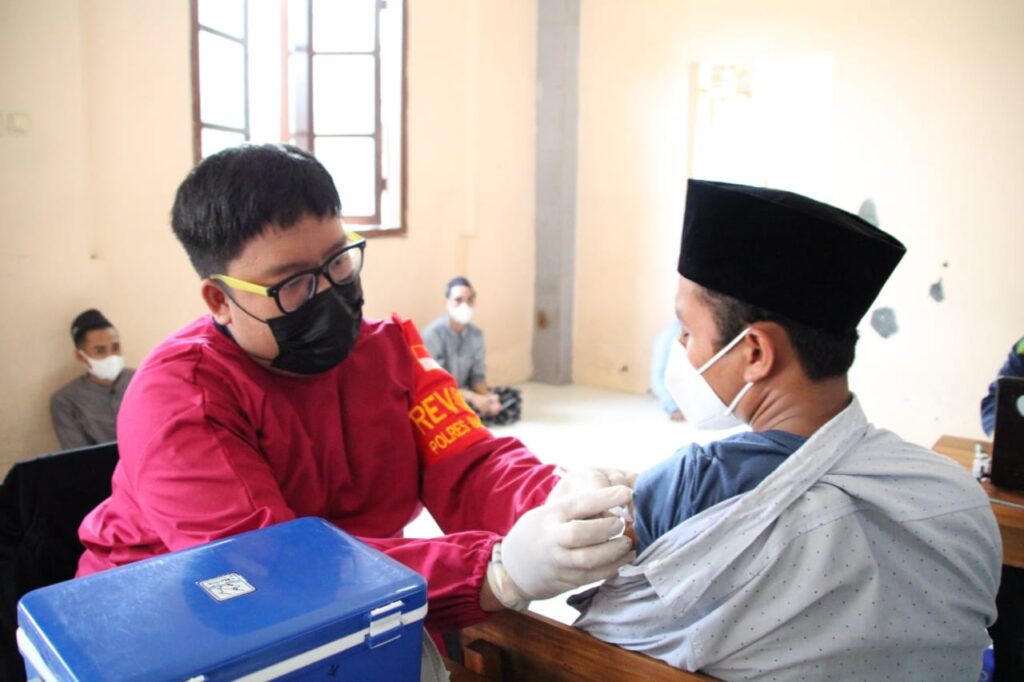 Bangkalan, Delikjatim.com – Vaksinasi covid-19 terus dilakukan di berbagai lini kehidupan masyarakat. Tak hanya menyasar masyarakat umum dan pelajar, kali ini Polri kembali melakukan vaksinasi secara serentak di Pondok Pesantren dan Rumah Ibadah, selasa (07/09/2021).