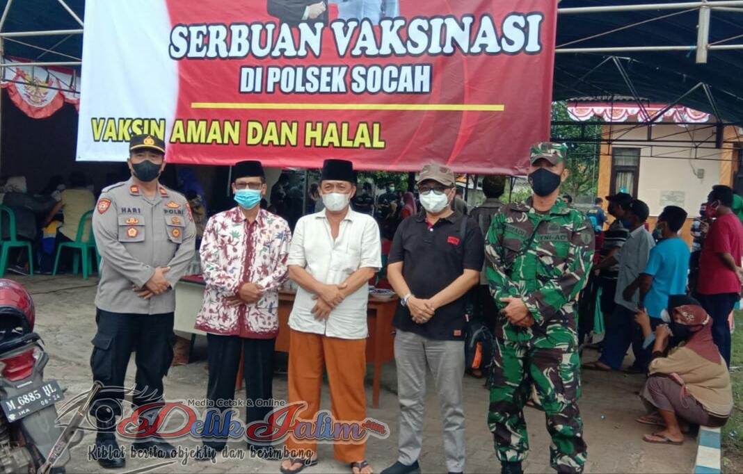 Kapolsek Socah IPTU SUHARIJANTO, SH mengatakan, program vaksinasi massal ini sengaja dilakukan untuk meminimalisir penularan Covid-19 di wilayah hukumnya.