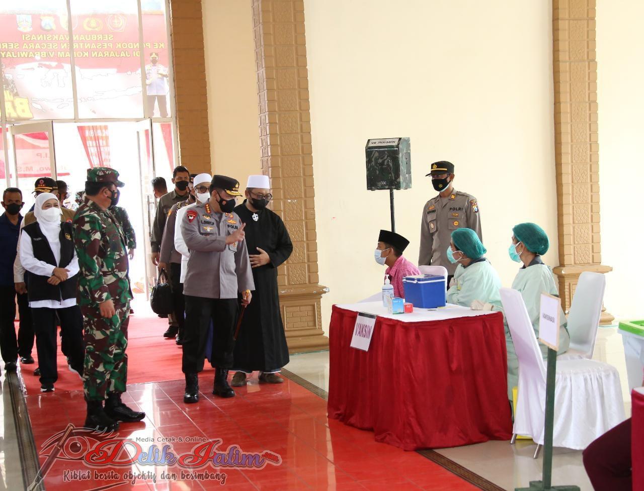 Surabaya, Delikjatim.com – Panglima TNI Marsekal Hadi Tjahjanto dan Kapolri Jenderal Listyo Sigit Prabowo meninjau kegiatan vaksinasi massal serentak 114 titik di 38 kab/kota Provinsi Jawa Timur (Jatim), Sabtu (11/9/2021).