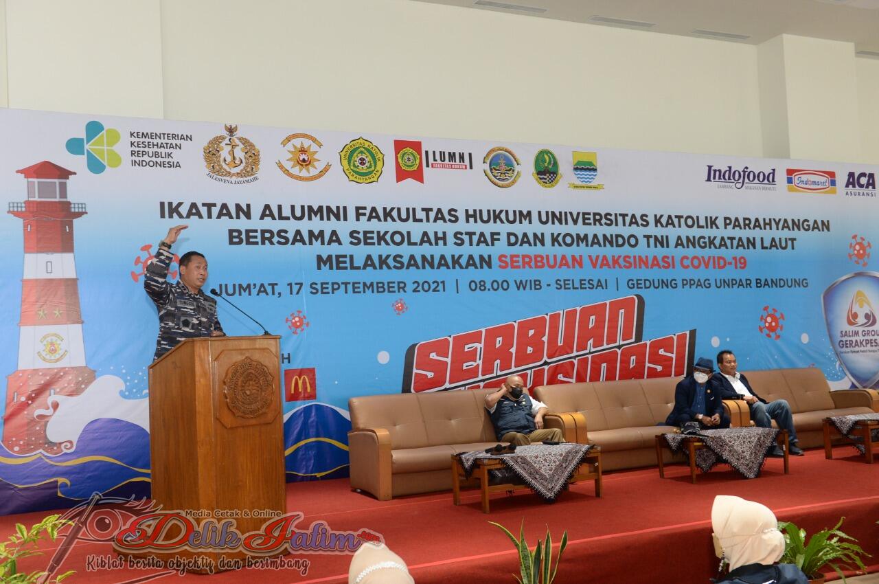 Surabaya, Delikjatim.com – TNI Angkatan Laut Seskoal Bersama Ikatan Alumni FH Universitas Parahyangan Bandung Melaksanakan Serbuan Vaksinasi Covid-19, di Gedung Pusat Pembelajaran Arntz-Geise (PPAG) Universitas Katolik Parahyangan (UNPAR) Bandung, Pada Hari Jumat, 17 September 2021 (17/09) .
