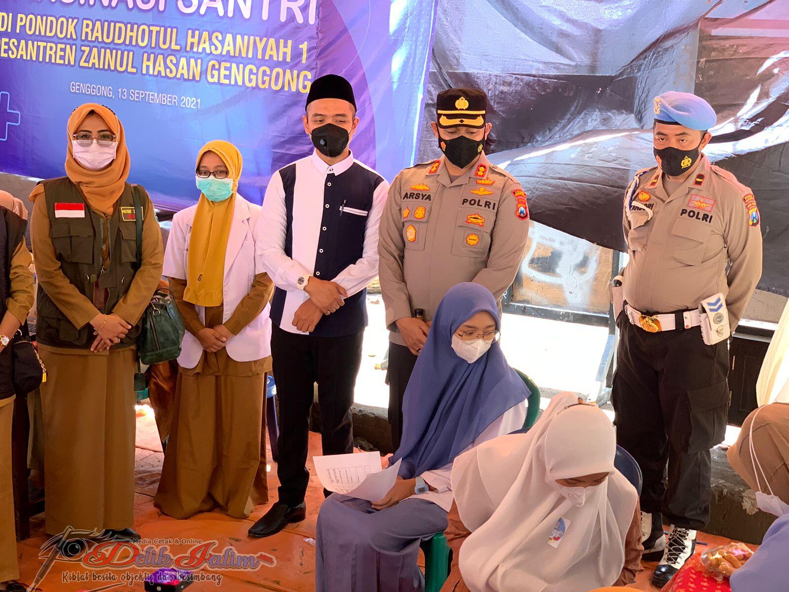 Senin (13/9/2021) Polres Probolinggo menggelar Vaksinasi Merdeka di Pondok Raudhotul Hasaniyah 1 Pesantren Zainal Hasan Genggong, Kecamatan Pajarakan, Kabupaten Probolinggo sekitar.