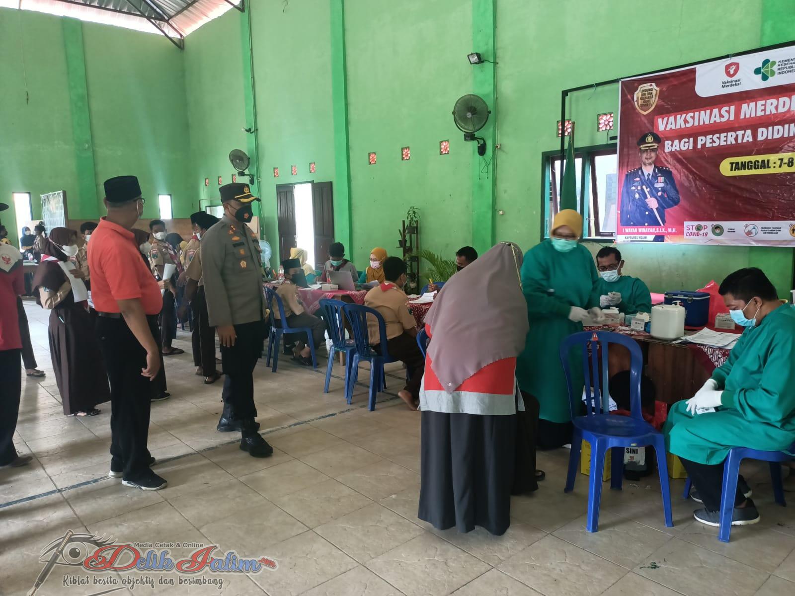 Ngawi, Delikjatim.com – Kepala Kepolisian Resor Ngawi AKBP I Wayan Winaya, S.I.K., M.H. didampingi Kapolsek Kedunggalar AKP Misrin, S.H. tinjau pelaksanaan vaksinasi terhadap siswa siswi Madrasah Tsanawiyah Negeri (MTsN) 6 Ngawi.