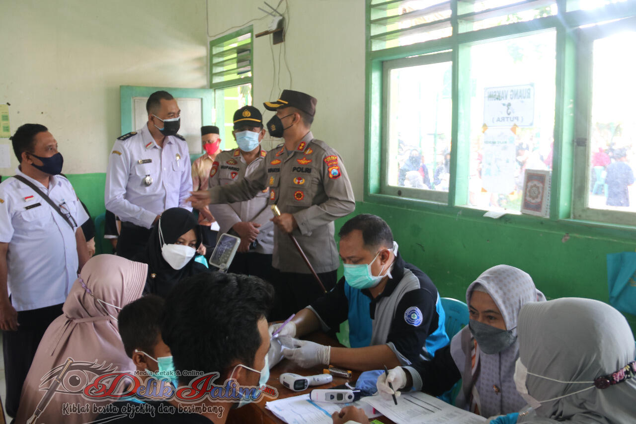 Ngawi, Delikjatim.com – Kapolres Ngawi AKBP I Wayan Winaya, S.I.K., M.H. didampingi Kapolsek Kendal AKP Suparno, S.H. dan Kasubagops AKP Agus Maryanto meninjau pelaksanaan vaksinansi massal kepada Santri dan Santriwati serta masyarakat umum di wilayah Kendal.
