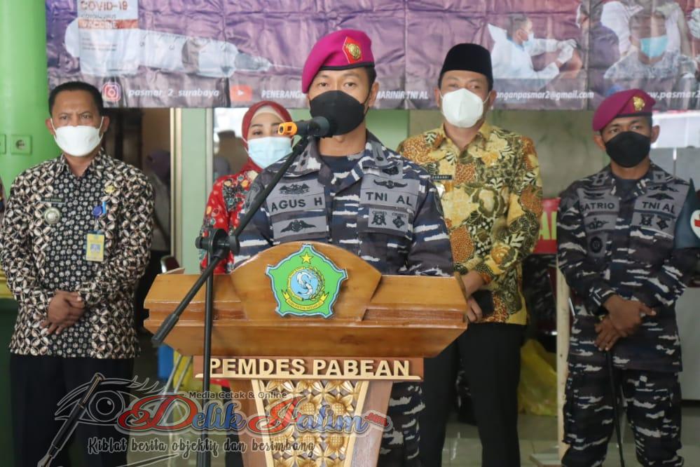 Kegiatan Vaksinasi ini dipimpin oleh Komandan Batalyon Angkutan Bermotor 2 Marinir (Danyonangmor 2 Mar) Letkol Marinir Agus Hariyanto, M. Tr. Hanla., yang mewakili Komandan Resimen Bantuan Tempur 2 Marinir (Danmenbanpur 2 Mar) Kolonel Marinir Hadi Santoso, S.E. M.M., serbuan vaksinasi tersebut merupakan perintah Komandan Korps Marinir Mayjen TNI (Mar) Suhartono, hal itu selaras dengan perintah Presiden Joko Widodo, Panglima TNI Marsekal TNI Hadi Tjahjanto, dan KASAL Laksamana TNI Yudo Margono.