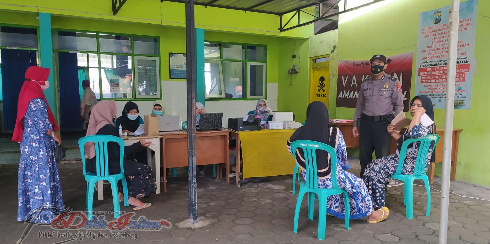Bangkalan, Delikjatim.com– Anggota Polsek Socah Aiptu Edi Subiantoro melaksanakan kegiatan pengamanan dan monitoring pelaksanaan vaksinasi massal covid-19 di Puskesmas Socah, Sabtu Pagi (18/12/2021) .