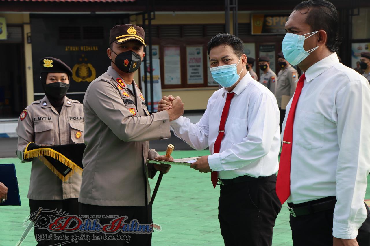 Pemberian penghargaan dipimpin langsung oleh Kapolres Ngawi AKBP I Wayan Winaya saat apel pagi pada hari Senin tanggal 13 Desember 2021 di halaman Polres Ngawi Jalan Sultan Agung No. 10.