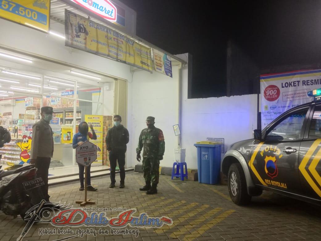 Boyolali, Delikjatim.com – Babinsa Koramil 07/Selo Kodim 0724/Boyolali melalui Serka Made beserta satu orang Babinsa dan dua orang Babinkamtibmas Polsek Selo melaksanakan operasi Yustisi pada malam hari untuk menghambat laju penyebaran virus covid 19 di Alfamart dan sekitarnya di Dukuh Blumbangsari RT 04 RW 05 Desa Samiran Kecamatan selo Kabupaten Boyolali, Selasa Malam (28/12/2021).